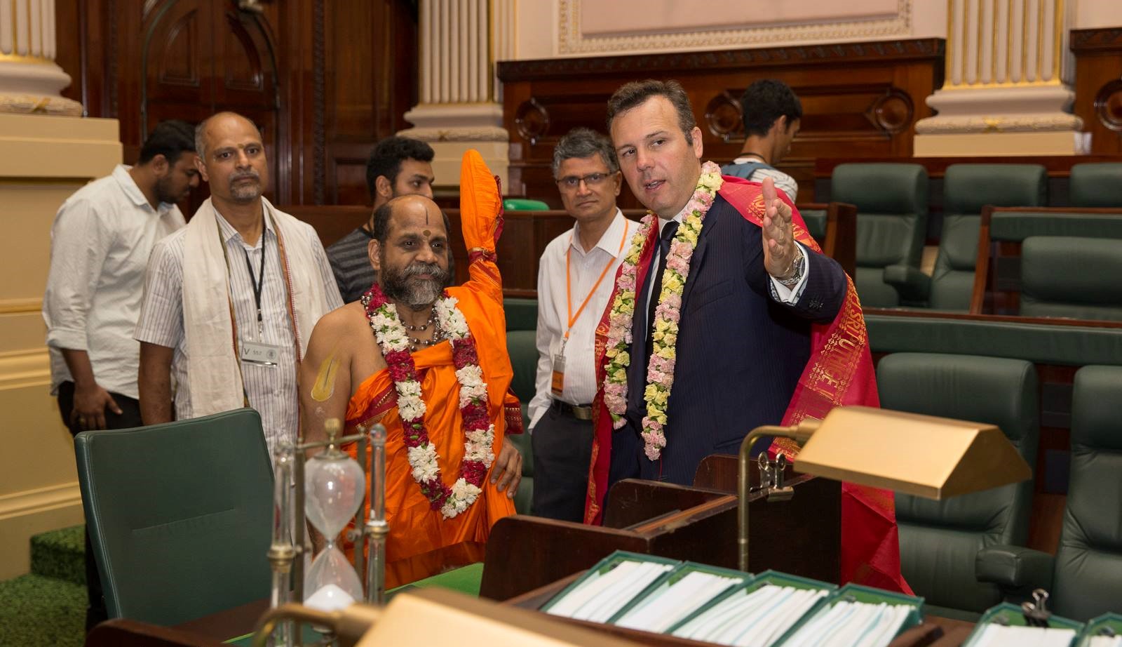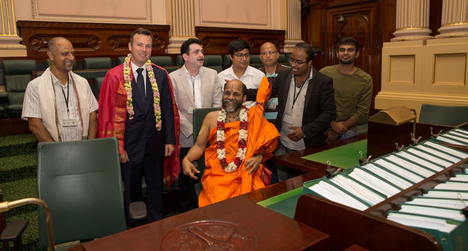 Shri Sugunendra Theertha Swamiji at Parliament of Victoria building, Melbourne
