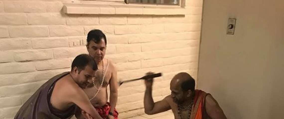 Taptha Mudra Dhaarana at Shri Venkata Krishna Temple, Shri Puthige Matha, Phoenix, Arizona - USA performed by Shri Shri Sugunendra Theertha Swamiji.