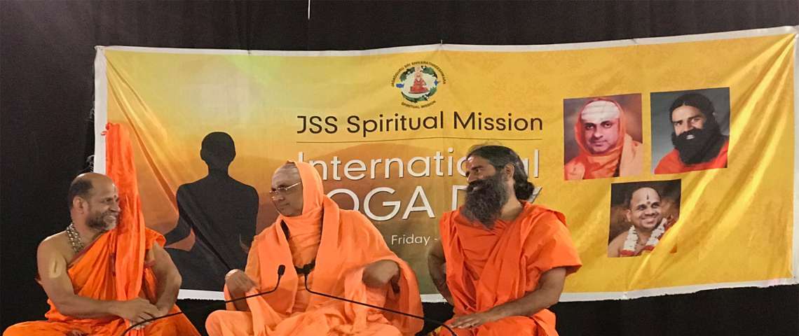 Yoga Day Celebration at JSS Spiritual Mission, Washington DC. Shri Sugunendra Theertha Swamiji, Suttur Swamiji and Baba Ramdev were present in the event.