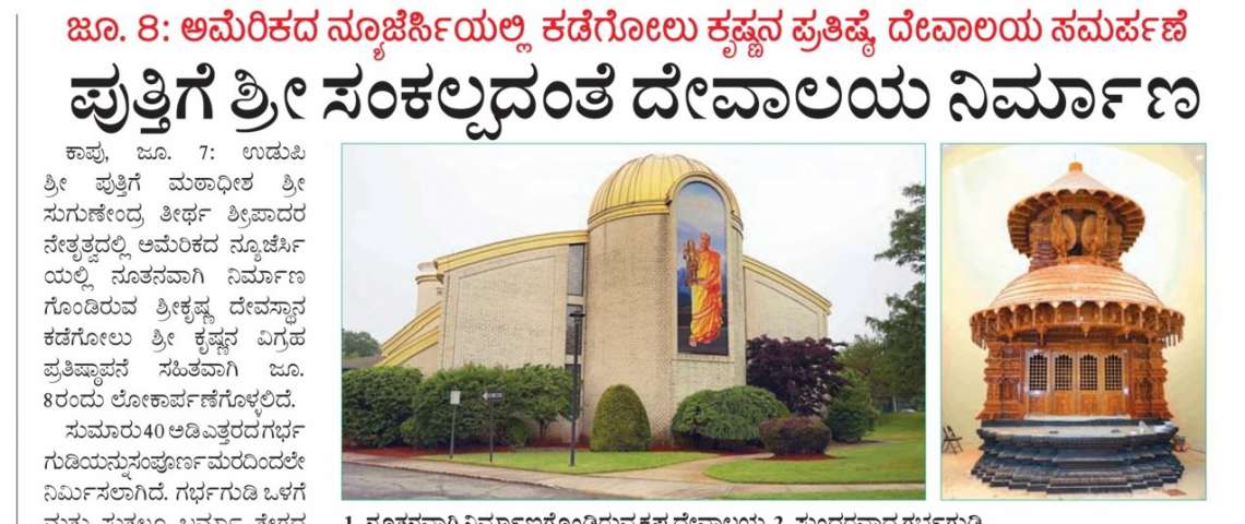 ಅಮೆರಿಕಾದ ನ್ಯೂ ಜೆರ್ಸಿ ಶ್ರೀ ಪುತ್ತಿಗೆ ಮಠದ ಶ್ರೀ ಕೃಷ್ಣಾವೃಂದಾವನದಲ್ಲಿ ಪರಮ ಪೂಜ್ಯ ಶ್ರೀ ಸುಗುಣೇಂದ್ರ ತೀರ್ಥ ಶ್ರೀಪಾದರ ದಿವ್ಯ ಉಪಸ್ಥಿತಿಯಲ್ಲಿ ಶ್ರೀಪಾದರಿಂದ ಶಿಖರ ಪೂಜೆ ಹಾಗೂ ಶ್ರೀ ಪುತ್ತಿಗೆ ವಿದ್ಯಾಪೀಠದ ವಿದ್ಯಾರ್ಥಿಗಳಿಂದ ಶಿಖರ ಪ್ರತಿಷ್ಠಾಪನೆ, ಪೀಠ ಪ್ರತಿಷ್ಠಾಪನೆ,ಜೂನ್ ೮ ರ ಶಾಲಿಗ್ರಾಮ ಶಿಲಾ ಕೃಷ್ಣಪ್ರತಿಷ್ಠಾಪನೆ ಪ್ರಯುಕ್ತ ವಿಜೃಂಭಣೆಇಂದ ನಡೆಯಿತ