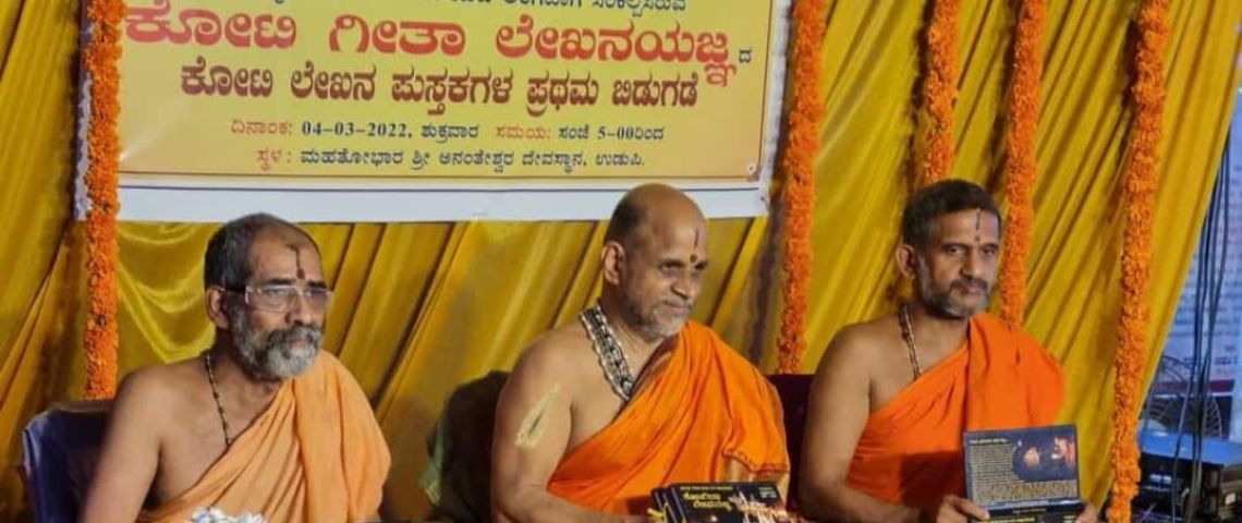By the grace of Shri Krishna and with the blessings from Sri Sri Sri Sugunendra Teertha Swamiji, Krishna Bhaktas from across the world are celebrating the Geetha Jayanthi by reciting all 18 chapters of Bhagavad Geetha.