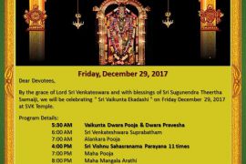 By the grace of Lord Shri Venkateshwara and with the blessings of Shri Sugunendra Theertha Swamiji, we will be celebrating "Shri Vaikunta Ekadashi" on Friday, December 29,...