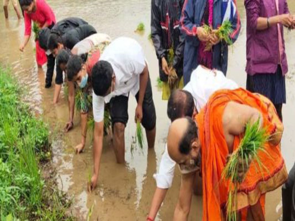 ಉದ್ಯಮಿ ನಾಗೇಶ್ ಹೆಗ್ಡೆ, ಶಾಸಕ ರಘುಪತಿ ಭಟ್ ಕೂಡಾ ಶ್ರೀಗಳೊಂದಿಗೆ ನೇಜಿ ನೆಟ್ಟರು.