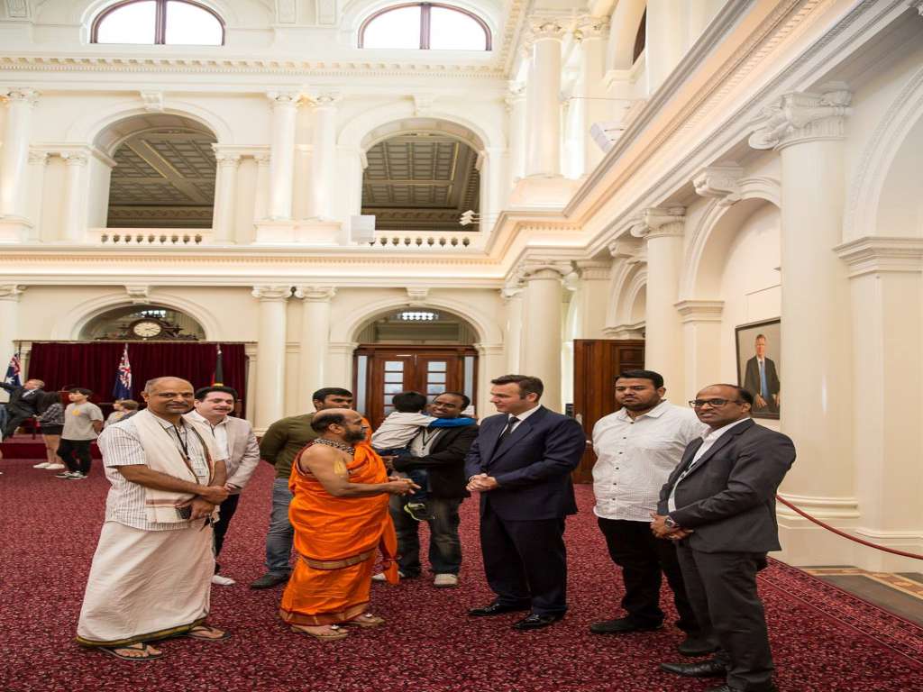Shri Sugunendra Theertha Swamiji at Parliament of Victoria building, Melbourne