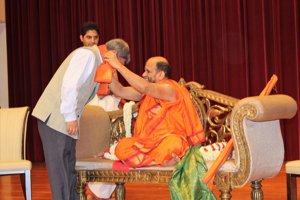 Shri Shri Sugunendra Theertha Swamiji in his address on the first subject – relevance of Gita in today’s life talked about the hectic material life of today and how Lord Krishna’s advice to Arjuna in the form of therapy conditioning him to the need for the war is still valid in today’s context. Swamiji also presented H.E. Shri Javed Ashraf High Commissioner of India with Shawl and garland.