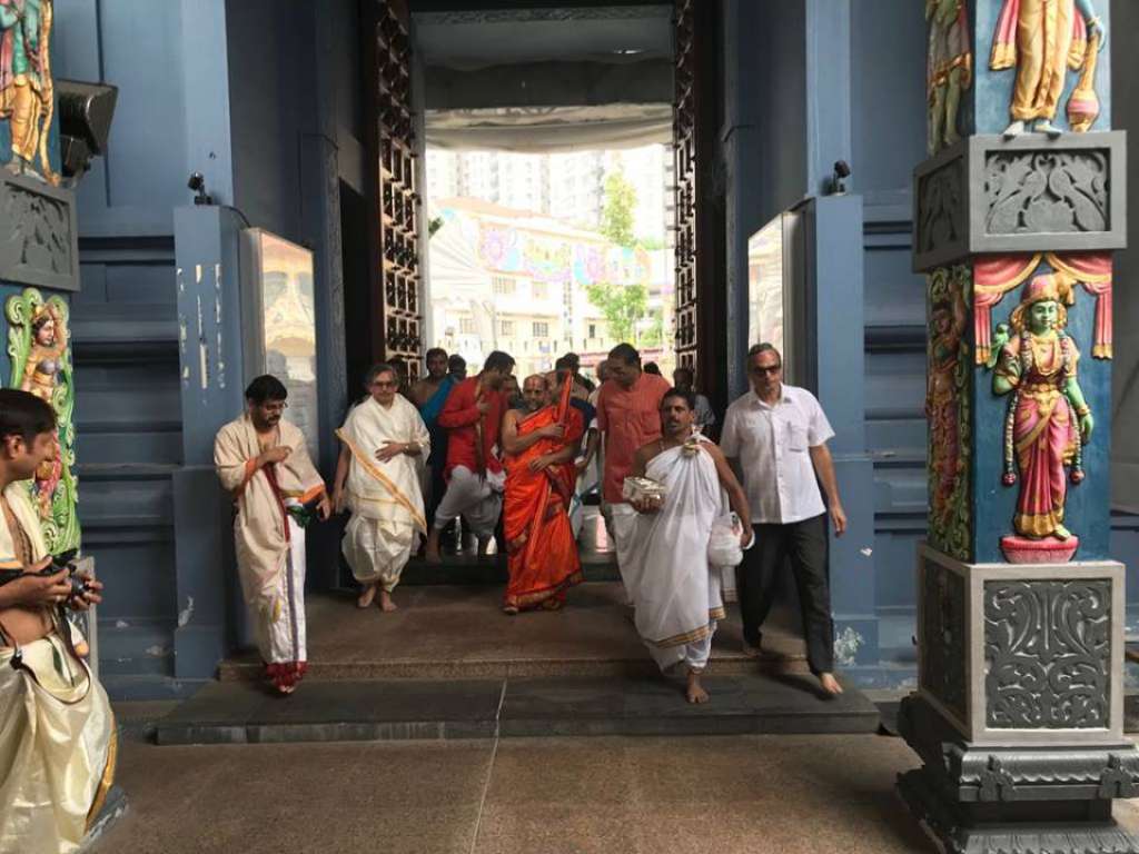 Shri Shri Sugunendra Theertha Swamiji was received at the Shri Srinivasa Perumal temple by its Vice chairman Shri Somasekaran, Shri Raja Segar CEO of Hindu Endowments Board amongst others, with temple honours and taken around the temple