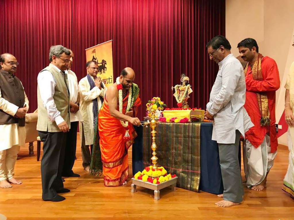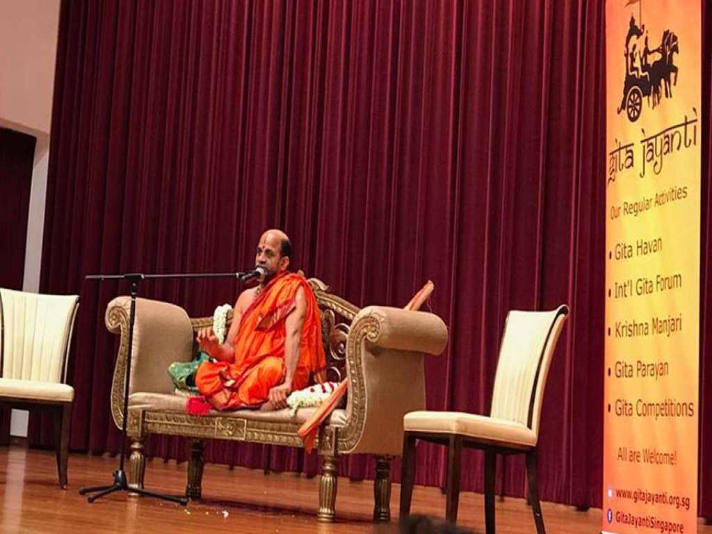 Gita Jayanti program started at 10 AM in the august presence of Shri Shri Sugunendra Theertha Swamiji of Puttige Mutt, H.E. Shri Javed Ashraf, High commissioner of India, Shri R. Jayachandran, Chairman of Hindu endowments Board, Shri Rajan Krishnan, Chairman of Hindu Advisory Board, Indian community members Shri Janardhana Bhat, Shri Vijaya Ranga, President of Kannada Sangha Singapore, Shri Raghav Putti, Shri Suresh Karanth and others.