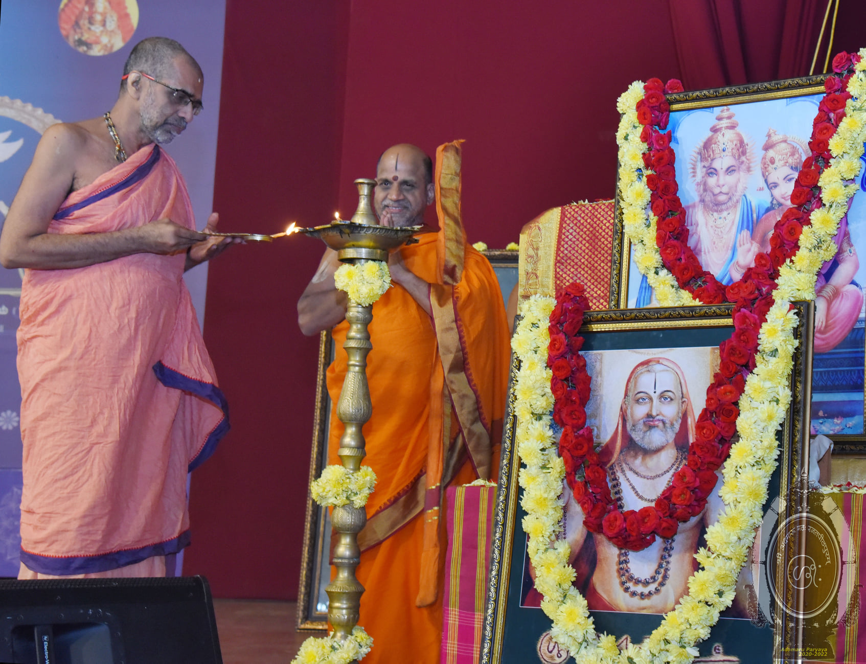 ಶ್ರೀಕೃಷ್ಣಮಠದ ರಾಜಾಂಗಣದ ನರಹರಿತೀರ್ಥ ವೇದಿಕೆಯಲ್ಲಿ,ಪರ್ಯಾಯ ಶ್ರೀ ಅದಮಾರು ಮಠದ ಆಶ್ರಯದಲ್ಲಿ, "ನಿನ್ನಾ ಒಲುಮೆಯಿಂದ ಪ್ರತಿಸ್ಥಾನಂ (ರಿ)"ಬೆಂಗಳೂರು ಇವರು ನಡೆಸುತ್ತಿರುವ ೧೬ ನೇ ವರ್ಷದ "ಶ್ರೀಮಧ್ವಪುರಂದರೋತ್ಸವ" ವನ್ನು ಪರ್ಯಾಯ ಅದಮಾರು ಮಠಾಧೀಶರಾದ ಶ್ರೀವಿಶ್ವಪ್ರಿಯತೀರ್ಥ ಶ್ರೀಪಾದರು ಪುತ್ತಿಗೆ ಮಠಾಧೀಶರಾದ ಶ್ರೀಸುಗುಣೇಂದ್ರತೀರ್ಥ ಶ್ರೀಪಾದರೊಂದಿಗೆ ದೀಪ ಪ್ರಜ್ವಲನೆಯೊಂದಿಗೆ ಉದ್ಘಾಟನೆ ಮಾಡಿ,ಸನ್ಯಾಸಿಗಳು ಕೊಟ್ಟ ಮದ್ದನ್ನು ಕೊಳ್ಳದ ನಮಗೆ ದಾಸರೆಂಬ ಅಮ್ಮ ಕೊಟ್ಟ ಊಟವನ್ನು ನಮ್ಮೆಲ್ಲರಿಗೂ ಶ್ರೀಕೃಷ್ಣನ ಸನ್ನಿಧಿಯಲ್ಲಿ ಬಡಿಸುತ್ತಿರುವ ಮೈಸೂರು ರಾಮಚಂದ್ರ ಆಚಾರ್ಯರ ಕೊಡುಗೆ ಎಲ್ಲರಿಗೂ ಆದರ್ಶವಾಗಲಿ ಎಂದು ಆಶೀರ್ವಚನ ನೀಡಿದರು.ಪುತ್ತಿಗೆ ಶ್ರೀಪಾದರು ಮಧ್ವ ತತ್ವ ವೆಂಬ ಸೂರ್ಯನ ಬೆಳಕಿನಲ್ಲಿ ದಾಸ ತತ್ವವೆಂಬ ಚಂದ್ರನ ಬೆಳಕನ್ನು ನೀಡಿರುವ ದಾಸರನ್ನು ಸ್ಮರಿಸುವ ಅವಕಾಶ ನಮಗೆ ಲಭಿಸಿದೆ ಎಂದು ಅನುಗ್ರಹಿಸಿದರು.ಉದ್ಘಾಟನಾ ವೇದಿಕೆಯಲ್ಲಿ ಪಲಿಮಾರು ಮಠದ ತತ್ವ ಸಂಶೋಧನಾ ಸಂಸತ್ತಿನ ಮೂಲಕ ಮಾಧ್ವ ಪೀಠಾಧಿಪಗಳವರ ಆಯ್ದ ನುಡಿಮುತ್ತುಗಳನ್ನು ಸಗ್ರಿ ರಾಘವೇಂದ್ರ ಆಚಾರ್ಯರು ಮತ್ತು ಓಂಪ್ರಕಾಶ್ ರವರು ಸಂಗ್ರಹಿಸಿದ "ಸರ್ವದಾ ಪ್ರತಿಪಾದಯ" ಎಂಬ ಪುಸ್ತಕವನ್ನು ಪರ್ಯಾಯ ಅದಮಾರು ಮಠಾಧೀಶರಾದ ಶ್ರೀವಿಶ್ವಪ್ರಿಯತೀರ್ಥ ಶ್ರೀಪಾದರು ಪುತ್ತಿಗೆ ಮಠಾಧೀಶರಾದ ಶ್ರೀಸುಗುಣೇಂದ್ರತೀರ್ಥ ಶ್ರೀಪಾದರು ಬಿಡುಗಡೆಗೊಳಿಸಿದರು. ಕಾರ್ಯಕ್ರಮವನ್ನು ಪ್ರತಿಷ್ಟಾನದ ಮೈಸೂರು ರಾಮಚಂದ್ರ ಆಚಾರ್ಯರು ನಿರ್ವಹಿಸಿದರು.