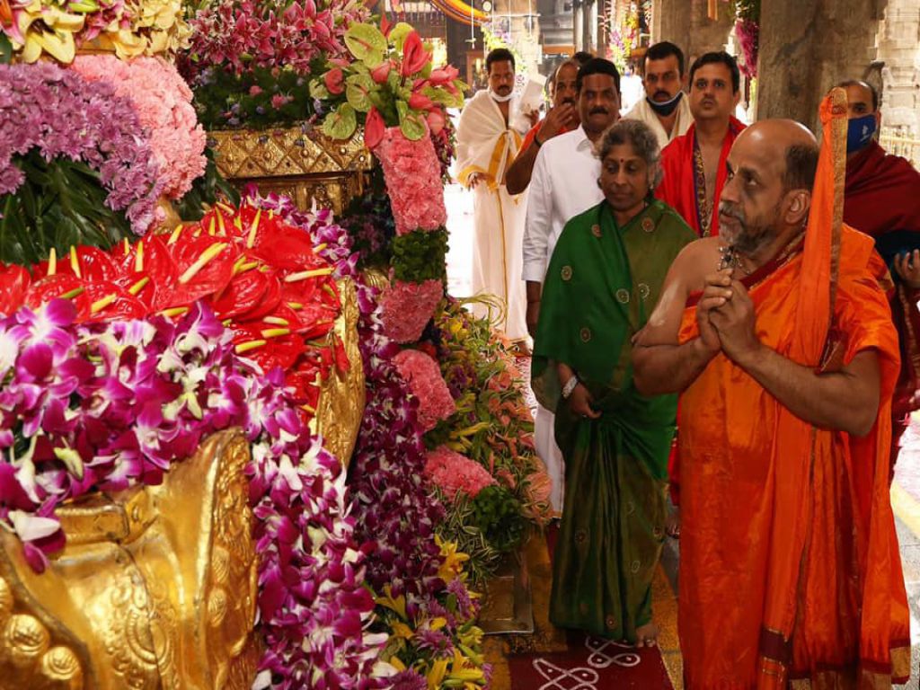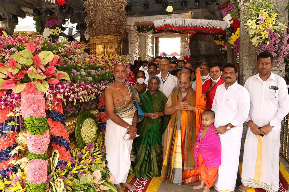 Visit to Lord Sri Venkateshwara temple at Tirumala Tirupathi by His Holiness Sri 1008 Sri Sugunendra Theertha Swamiji, Chief pontiff, Sri Puthige Matha, today, along with Karkala MLA Sri Sunil Kumar, Basavanagudi MLA Sri Ravi Subramanyam, MP Sri Tejaswi Surya, Sri Praveen Kumar Kappettu Udupi, Sri Maranakatte Krishna Murthy Hyderabad, and Kolar MP Mariswamy and other devotees